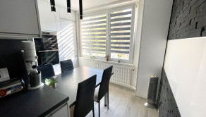 Byt prešiel kompletnou modernou rekonštrukciou pred dvoma rokmi. Má murované jadro a vinylovú podlahu vo vstupnej chodbe, v kuchyni, v kúpeľni a v jednej z izieb. Obývacia izba a spálňa majú plávajúcu podlahu. Okná sú plastové s vnútornými roletami. V kúpeľni sa nachádza sprchový kút a WC je samostnatne. Obývacia izba je prechodná izba do spálne, v ktorej sa nachádza šatník a vstup na loggiu. Tretia izba je nepriechodná.