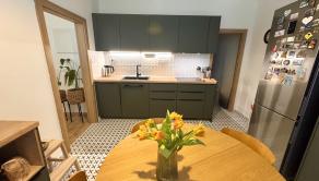 Nehnuteľnosť prešla postupnou a kvalitnou rekonštrukciou, ktorá zahŕňa plastové okná( v 2 izbách aj vonkajšie plastové rolety), nové laminátové podlahy, keramickú dlažbu v kuchyni, murované jadro, výmenu elektroinštalácie a nové stierky. Kuchyňa je vybavená modernou kuchynskou linkou so zabudovanými spotrebičmi – varnou doskou, digestorom, elektrickou rúrou a umývačkou riadu.